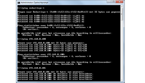 Het gebeurt wel eens in een netwerk dat een apparaat plots niet meer reageert. Om snel uit te vissen of er nog wel een netwerkverbinding bestaat tussen je pc en dat apparaat gebruik je het ping-commando, gevolgd door de computernaam of het IP-adres van dat apparaat (bijvoorbeeld ping redactiepc-1 of ping 192.168.0.5). Als het goed is, dan krijg je vier antwoorden. Is dat niet zo, controleer dan de fysieke aansluiting of de netwerkconfiguratie. In veel gevallen kun je ook externe servers testen (zoals ping www.google.nl). Kun je wel een extern IP-adres pingen (zoals ping 8.8.8.8), maar niet de URL, dan is er mogelijk een probleem met de DNS-service: zie ook tip 11.