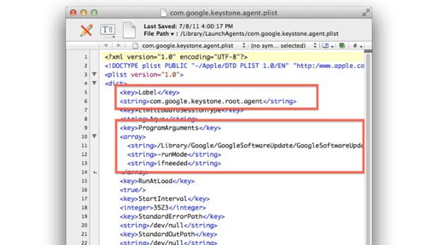 Op zijn meest elementaire, een Launch Agent script is een standaard property list (plist) XML bestand dat twee belangrijke key-value eisen heeft: de eerste is een label zodat het kan worden opgenomen in de lijst en in de systeem launcher kan worden geïdentificeerd, en de tweede is een programma argument dat wijst naar een uitvoerbaar bestand op je Mac. Verder zul je moeten aangeven wanneer het programma geopend moet worden.