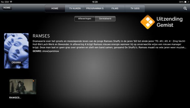 De geschiedenisknop is handig om bekeken content terug te vinden en onder de noemer Aanbevolen vind je aanbevelingen voor programma's die gemaakt zijn op basis van jouw kijkgedrag. Via AirPlay kun je uitzendingen bekijken op een televisie waarop een Apple TV is aangesloten.