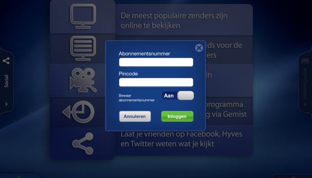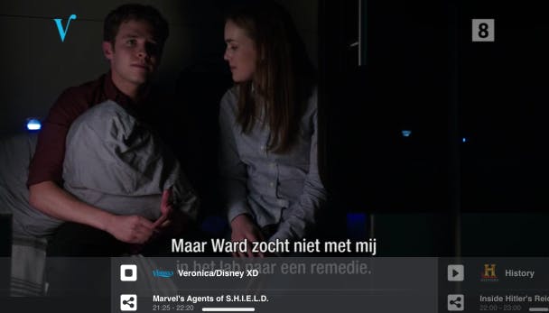 Via AirPlay kun je de uitzendingen naar Apple TV streamen, zodat je geen tweede decoder nodig hebt.