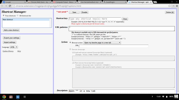 Dankzij een handige extensie genaamd Shortcut Manager is het eenvoudig om binnen Chrome OS je eigen toetscombinaties aan te maken. Met de gratis software kan je veelgebruikte acties sneller uitvoeren door hier simpelweg een toetscombinatie voor aan te maken.