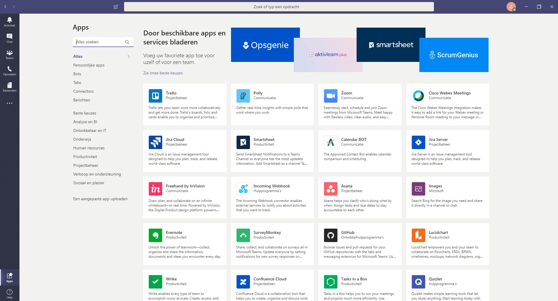 Teams biedt veel opties om samen te werken met collega’s en veel gebruikers zullen genoeg hebben aan deze opties. Maar gebruikt je bedrijf specifieke tools of programma’s, denk aan Zoom of WebEx, dan zou het fijn zijn als je deze direct kunt integreren in Teams. Anders blijf je immers tussen veel verschillende programma’s schakelen.