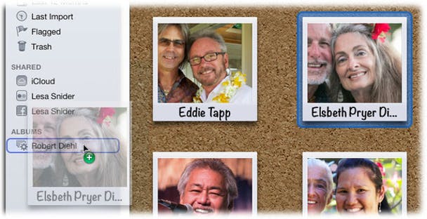 Je kunt echter ook een opgeslagen slideshow aanmaken door een album of meerdere foto's te selecteren en File > New Slideshow te kiezen. Opgeslagen slideshows verschijnen als aanklikbare iconen in je Source lijst, zodat je ze nu of later eindeloos kunt aanpassen. Je kunt zelfs voor elke slide verschillende overgangen en snelheden instellen. Opgeslagen slideshows kunnen naar iOS apparaten gesynchroniseerd worden door ze in iPhoto te exporteren als QuickTime movie, je iOS apparaat aan je Mac te koppelen en vervolgens Include Videos in te schakelen in het Photos tabblad van iTunes voordat je begint met synchroniseren (zie het stukje over Apple TV hieronder voor meer).