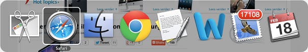 Wil je een applicatie waarin je werkt snel afsluiten of even verbergen? Ook dit kan met behulp van sneltoetsen. Breng simpelweg de app die je wilt afsluiten of verbergen naar de voorgrond en klik op Command + Q om de app af te sluiten of Command + H om de app te verbergen. De app weer oproepen zonder je muis te gebruiken kan door de app te selecteren in het menu dat je te zien krijgt als je op Command + Tab klikt.
