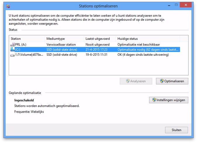 Tip 08 Windows 8 weet of je schijf een HDD of SSD is en zal een SSD niet gaan defragmenteren, maar een TRIM-commando naar de SSD sturen.