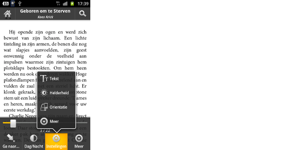 Hebt u een tablet of smartphone waarop het besturingsysteem Android draait, dan is het gratis programma Aldiko uit de Android Market een prima applicatie om e-books mee te lezen. De werking komt aardig overeen met die van iBooks van Apple. Wel toont de gratis versie hier en daar wat reclame. Wilt u hier vanaf, dan is er voor 3 euro een reclamevrije Premium-versie beschikbaar. Vanuit de app kan er gewinkeld worden, maar dan gaat het wel om Engelstalige boeken. Uw favoriete Nederlandstalige boeken zult u ergens anders vandaan moeten halen. Een andere handige e-reader is Moon+ Reader. Dit eveneens gratis programma kan helaas niet met beveiligde boeken overweg, maar heeft als voordeel dat het uiterlijk en de bediening in hoge mate kan worden aangepast. Ook deze app toont reclameboodschappen, tenzij u voor 3,50 euro de Pro-versie koopt.