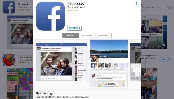 Net een iPad gekocht? Dan moet je Facebook wel nog even handmatig installeren. Ondanks dat de app onmisbaar is voor velen en er allerlei functies verweven zijn met iOS, is het geen gemeengoed en staat ie nog niet vooraf op de iPad geïnstalleerd. Open de App Store, voer Facebook in de zoekbalk in en tik op Gratis en daarna op Installeer. Na de installatie tik je op Open en kun je inloggen met je gebruikersnaam en wachtwoord.