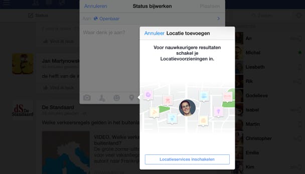 Als je voor het eerst een locatie aan je statusupdate wilt koppelen, moet je eerst de locatieservices inschakelen.