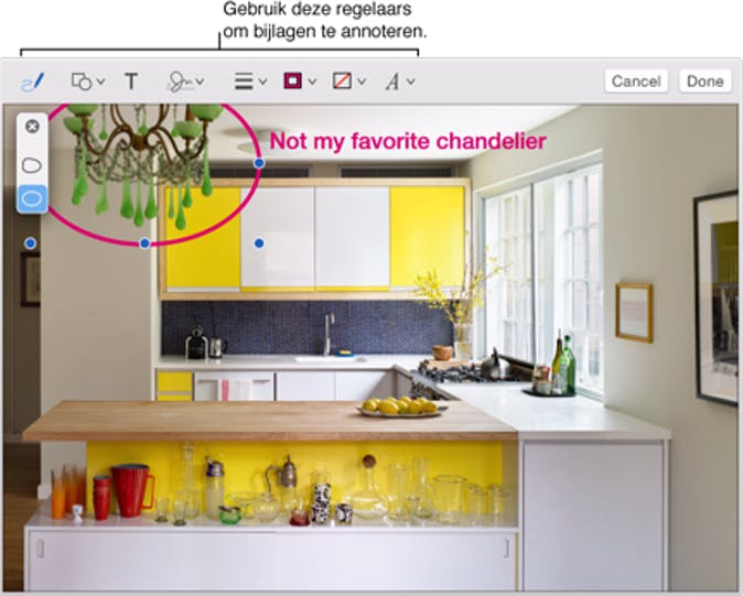 Als je aan een e-mail bezig bent kun je, zonder de Mail app te verlaten, vormen en tekst aan PDF bestanden en afbeeldingen toevoegen met de Markering functie. Dit is bijvoorbeeld handig voor het ondertekenen van documenten die je moet insturen, zodat je ze niet langer hoeft uit te printen en opnieuw in te scannen. Lees ook: 10 handige Mail-functies die je nog niet kent.