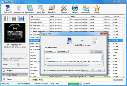 Muziek toevoegen is dankzij SharePod een simpel karweitje.