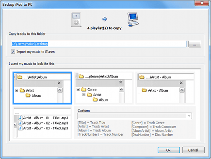 Het gebruik van SharePod is buitengewoon eenvoudig. U sluit het apparaat op uw computer aan, waarna u het programma opent. Alle audiotracks en filmpjes van de speler worden nu ingeladen. U ziet onder in beeld precies hoeveel ruimte er nog beschikbaar is voor nieuw materiaal. Gebruik de knop Copy to iPod om muziek toe te voegen, selecteer vervolgens een map of enkele losse bestanden op uw harde schijf en bevestig met OK. U kunt de bestanden vanaf de speler tevens naar uw computer kopiëren. Nuttig is de mogelijkheid om hierbij zelf de mappenstructuur te bepalen. Zo sorteert u de multimediacollectie bijvoorbeeld op genre, artiest of muziekalbum. Desgewenst geeft u aan dat u de muziek ook aan uw iTunes-bibliotheek wilt toevoegen. Wilt u een volledige back-up maken op uw harde schijf inclusief alle afspeellijsten? Gebruik dan de knop Backup iPod.