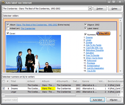 De muziek op een iPod of iPhone wordt ingedeeld op basis van tags. Als deze een verkeerde naam bevatten, dan kunt u muziek van een artiest mogelijk niet terugvinden. Dankzij MediaMonkey wijzigt u tags erg simpel: u haalt de informatie gewoon op van internet. Selecteer de betreffende muzieknummers en klik erop met de rechtermuisknop. Kies Eigenschappen en pas alle gegevens naar eigen inzicht aan. Desgewenst kunt u ook gegevens van de Amazon-database importeren. Vaak wordt het muziekalbum meteen herkend. Als dat niet het geval is, gebruikt u de zoekfunctie om alsnog het juiste album te selecteren. Bevestig met de knop Auto-label, waarna alle benodigde informatie wordt opgehaald. Deze methode is een uitstekende manier om albumhoezen toe te voegen. Een hele verbetering vergeleken met iTunes, waar het een voorwaarde is om eerst een Store-account te creëren. Houd er rekening mee dat de database van Amazon minder geschikt is om gegevens van Nederlandse artiesten te vinden.