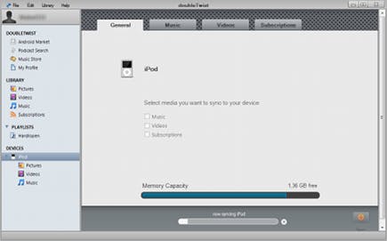 Hoewel deze freeware tool nog in een bètafase verkeert, is het zeer de moeite waard om hem alvast uit te proberen. DoubleTwist beschikt namelijk over een aantal specifieke eigenschappen. Bezoek de website Doubletwist om het te downloaden. U dient eerst een account aan te maken, voordat u het programma kunt gebruiken. Na installatie wordt uw draagbare mediaspeler direct herkend. DoubleTwist kan overweg met toestellen van Apple maar ook met bijvoorbeeld een PSP, BlackBerry of Androidtoestel. Handig, want u hebt maar één tool nodig om de inhoud van meerdere apparaten te beheren. U voegt gemakkelijk bestanden toe aan de bibliotheek door ze naar het hoofdvenster te slepen. DoubleTwist herkent automatisch de meeste audio- en video-bestanden op uw computer. Het gebruikt de bibliotheken van Windows Media Player en iTunes (indien aanwezig) om te controleren of er nieuw materiaal aanwezig is. U kunt ook afspeellijsten uit deze programma's importeren. Aan de linkerkant klikt u op de naam van de speler om te bepalen welke media u wilt synchroniseren. Beslis vervolgens welke bestanden het programma moet synchroniseren, bijvoorbeeld alle muziek, films en abonnementen. Ook afspeellijsten kunt u selecteren. U bevestigt de handeling middels de knop Sync. Bestanden die u toevoegt aan het apparaat, worden zo nodig automatisch naar het juiste bestandsformaat geconverteerd.