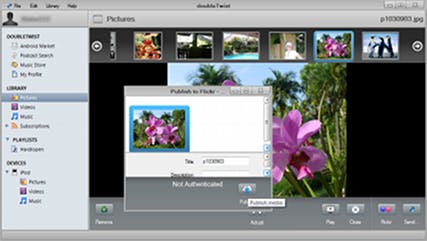 Foto's uploaden naar de online dienst Flickr is een fluitje van een cent met DoubleTwist.
