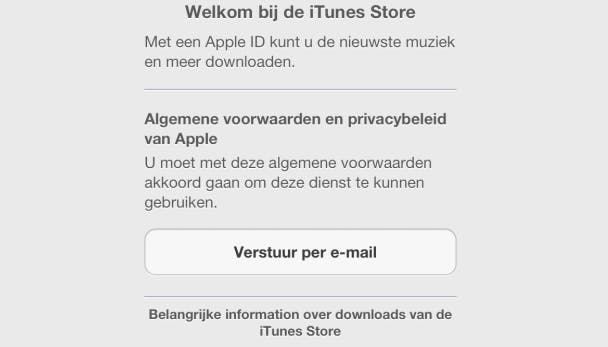 Vroeger was dit niet zo, je Apple ID kon dan bijvoorbeeld 'jandeboer' zijn. Je opgegeven e-mailadres wordt gebruikt voor de communicatie over je Apple ID, zorg dus dat je een geldig adres opgeeft. Het wachtwoord vereist een speciale aanpak, Apple accepteert namelijk geen slechte wachtwoorden. Dit betekent dat het wachtwoord minstens acht tekens moet hebben en er minstens één nummer, één hoofdletter en één kleine letter in moet zitten. Verder mag het wachtwoord geen drie dezelfde letters of cijfers achter elkaar hebben en mag je geen e-mailadres of wachtwoord ingeven die je het afgelopen jaar al bij Apple hebt gebruikt.
