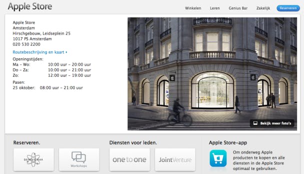 Hier selecteer je de winkel in Amsterdam en kies je voor Genius-Bar om een afspraak in te plannen. Apple is overigens druk aan het bouwen, de winkel in Den Haag gaat open op het moment dat dit blad op je deurmat ligt en de winkel in Haarlem volgt komend voorjaar. Op dezelfde website kun je ook een reservering maken voor een workshop. Apple geeft veel workshops over hun producten in hun Apple Stores, zo kun je meer te weten komen over bijvoorbeeld GarageBand, iOS 7 of hoe je je Apple-producten in het bedrijfsleven kunt inzetten.