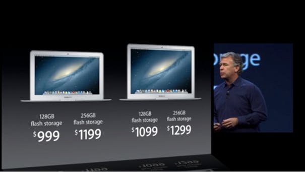 Het 128GB-model van de 11 inch MacBook Pro is beschikbaar voor 1029 euro, terwijl het 256GB-model voor 1229 euro in de winkels ligt. De 13 inch-modellen zijn iets duurder. De 128GB-variant is te koop voor 1129 euro, terwijl de 256GB voor 1329 euro over de toonbank gaat. De nieuwe MacBook Airs zijn per direct beschikbaar.