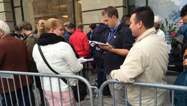 Tientallen Apple-liefhebbers stonden vrijdag al vroeg in de rij om de nieuwe iPhone 6 of iPhone 6 Plus te kopen. Een enkeling lag zelfs al een paar dagen voor de deur. Om het lange wachten wat dragelijker te maken brachten wij vanochtend een bezoekje aan de Apple Store in Amsterdam en deelden er het nieuwste iPhone Magazine uit.