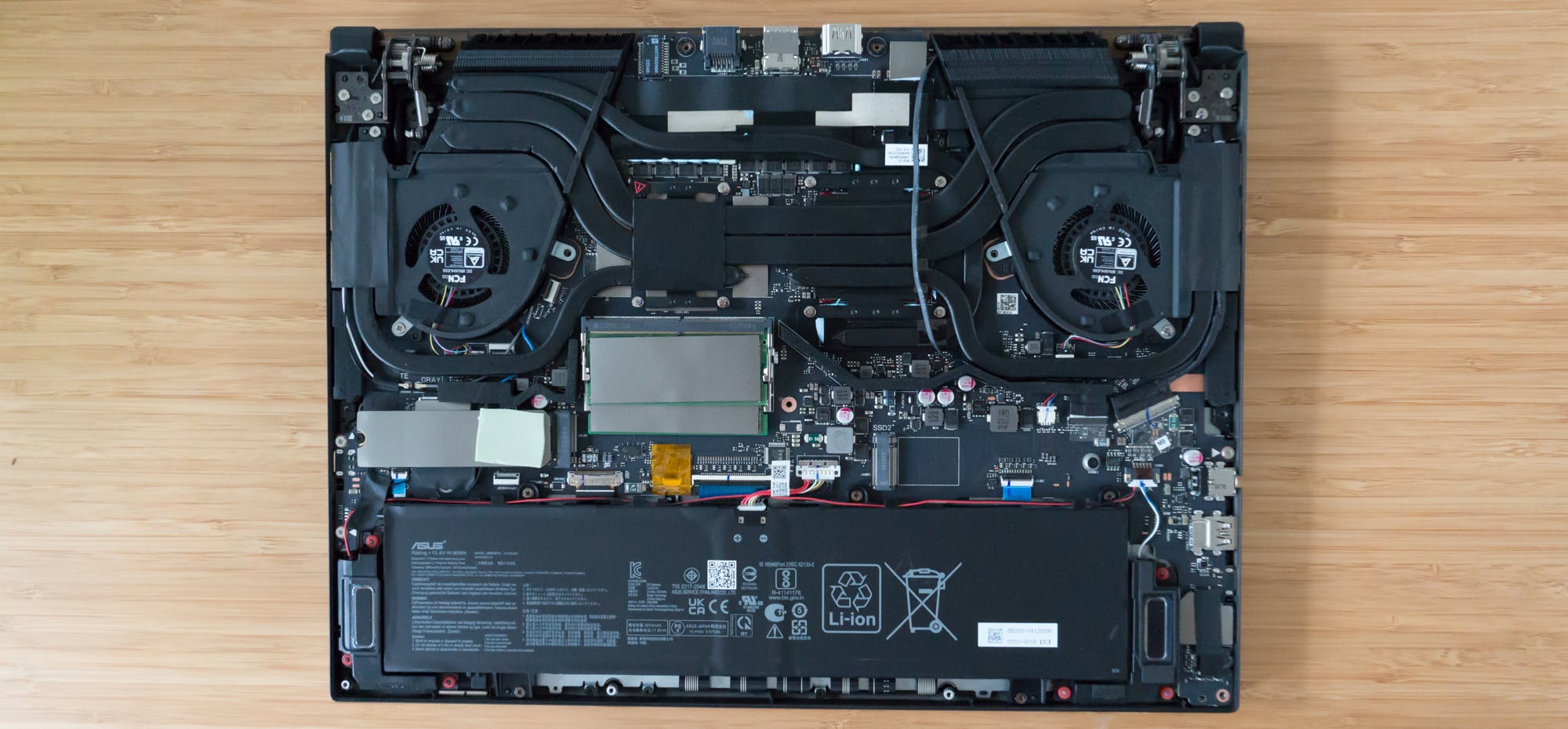 De Zephyrus Duo 16 is in Nederland in twee uitvoeringen te koop. Wij ontvingen het topmodel voorzien van een AMD Ryzen 9 6900X processor met acht cores in combinatie met 32 GB RAM, een 2TB-ssd en een Nvidia GeForce 3080 Ti. Die uitvoering is maar beperkt te koop en kost maar liefst 4599 euro. De goedkopere uitvoering heeft een wat langzamere Ryzen 7 6800H-processor die eveneens acht cores heeft en een Nvidia GeForce 3070 Ti grafische kaart. Verder zijn de twee uitvoeringen in Nederland identiek en met een prijs van 3639 euro is deze nog steeds krachtige goedkopere variant van de Zephyrus Duo 16 een stuk betaalbaarder. De laptop is voorzien van één (razendsnelle) ssd, maar upgraden is mogelijk. Je kunt de laptop relatief eenvoudig openmaken waarna je het werkgeheugen en de opslag kunt vervangen. Er is zelfs nog een M.2-slot voor een tweede ssd vrij.