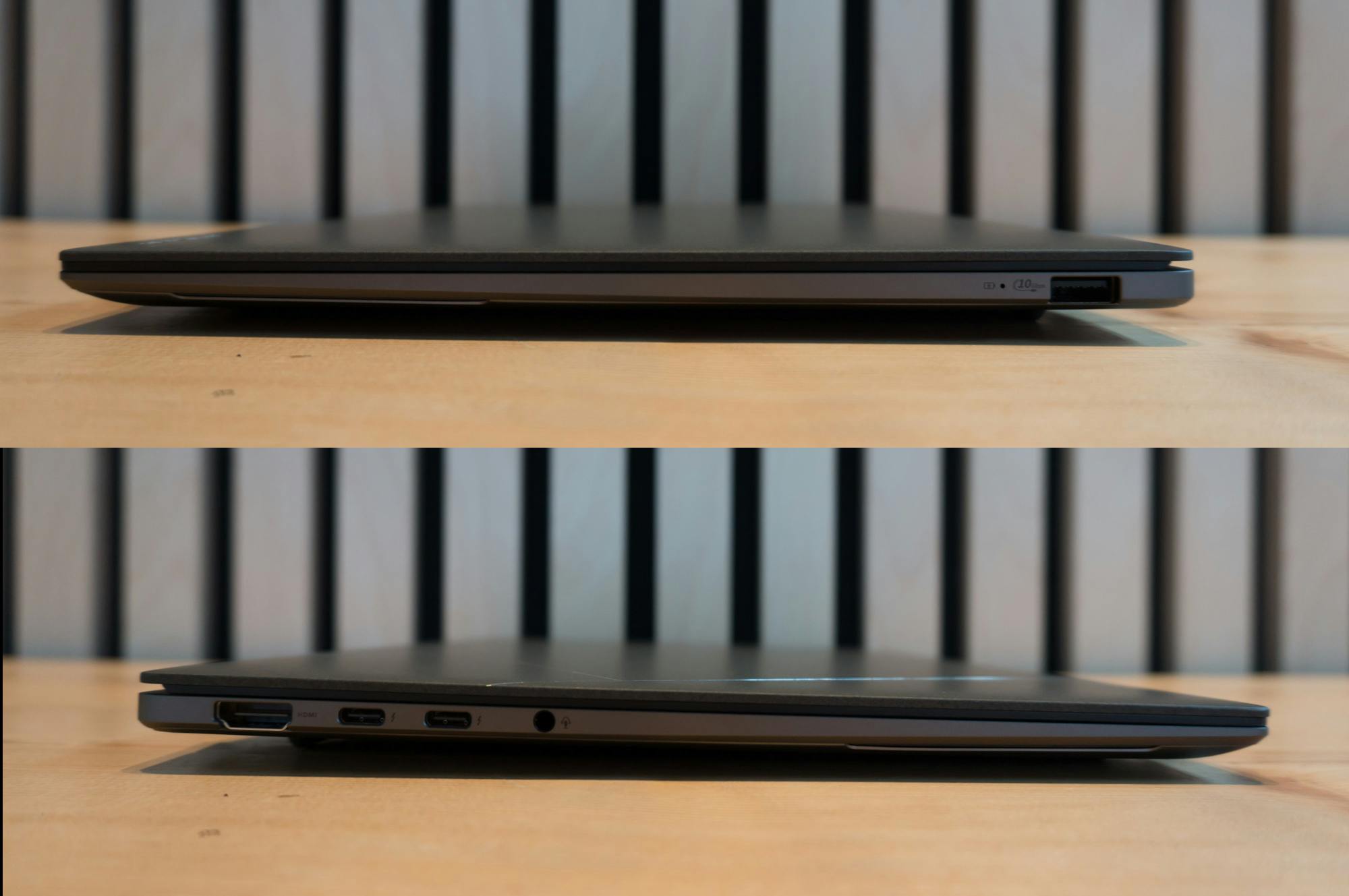 Voor een dunne laptop krijg je een heel bruikbare selectie aansluitingen met tweemaal usb-c (met Thunderbolt-ondersteuning), usb-a, HDMI en een 3,5mm-hoofdtelefoonaansluiting. Wifi wordt verzorgd door een Intel wifi 7-kaartje. In de doos vinden we naast de laptop een bijzonder compacte 65watt-lader en een prima laptopsleeve.
