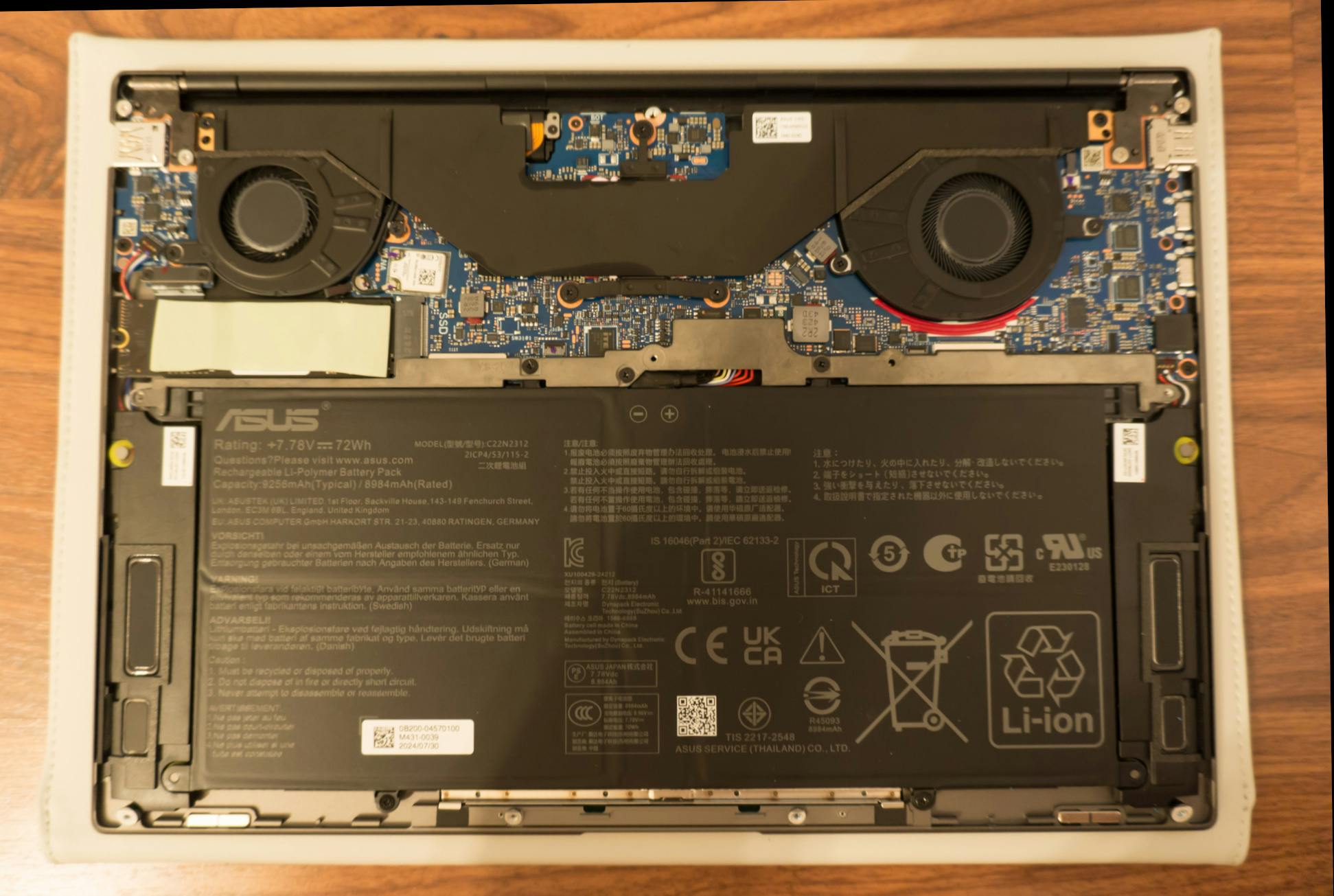 Wel zien we in die multi-core-score wat verval als we de benchmark langere tijd laten draaien. Waar Zenbooks in het verleden soms erg luidruchtig waren, is dat bij deze variant geen probleem. Alleen bij heel zware taken hoor je de ventilator duidelijk blazen.