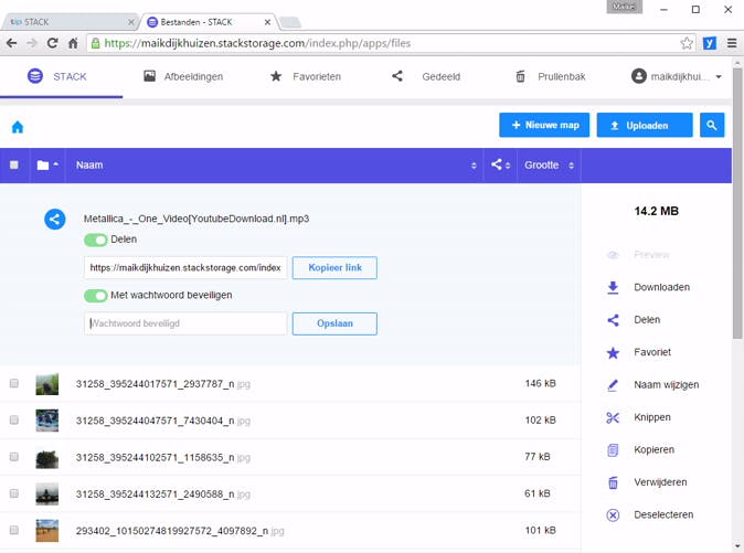 Zo gelden er geen bestandslimieten en de gebruikersomgeving is zeer fraai uitgewerkt. Via een unieke STACK-url heb je toegang tot je eigen cloud. Fijn is dat er verschillende opties zijn om de bestanden te sorteren, zoals op naam, bestandsgrootte en datum.