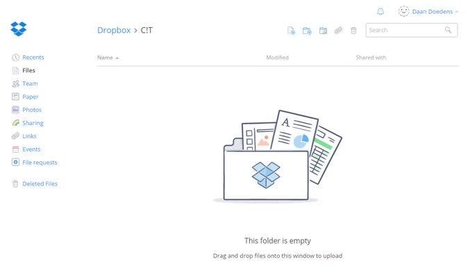 Dropbox werkt door een map op je computer aan te maken en de inhoud daarvan met de cloud te delen. Die cloud synchroniseert weer met de devices waarop je Dropbox geïnstalleerd hebt staan. Je kunt ook bij je eigen Dropbox komen door naar de website te navigeren.