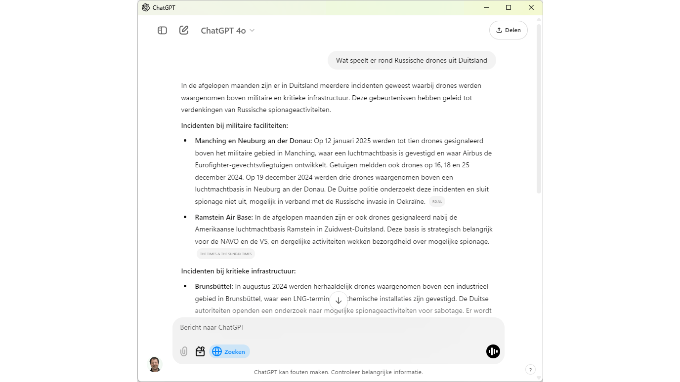 ChatGPT kan actuele informatie op internet erbij zoeken waar nodig.