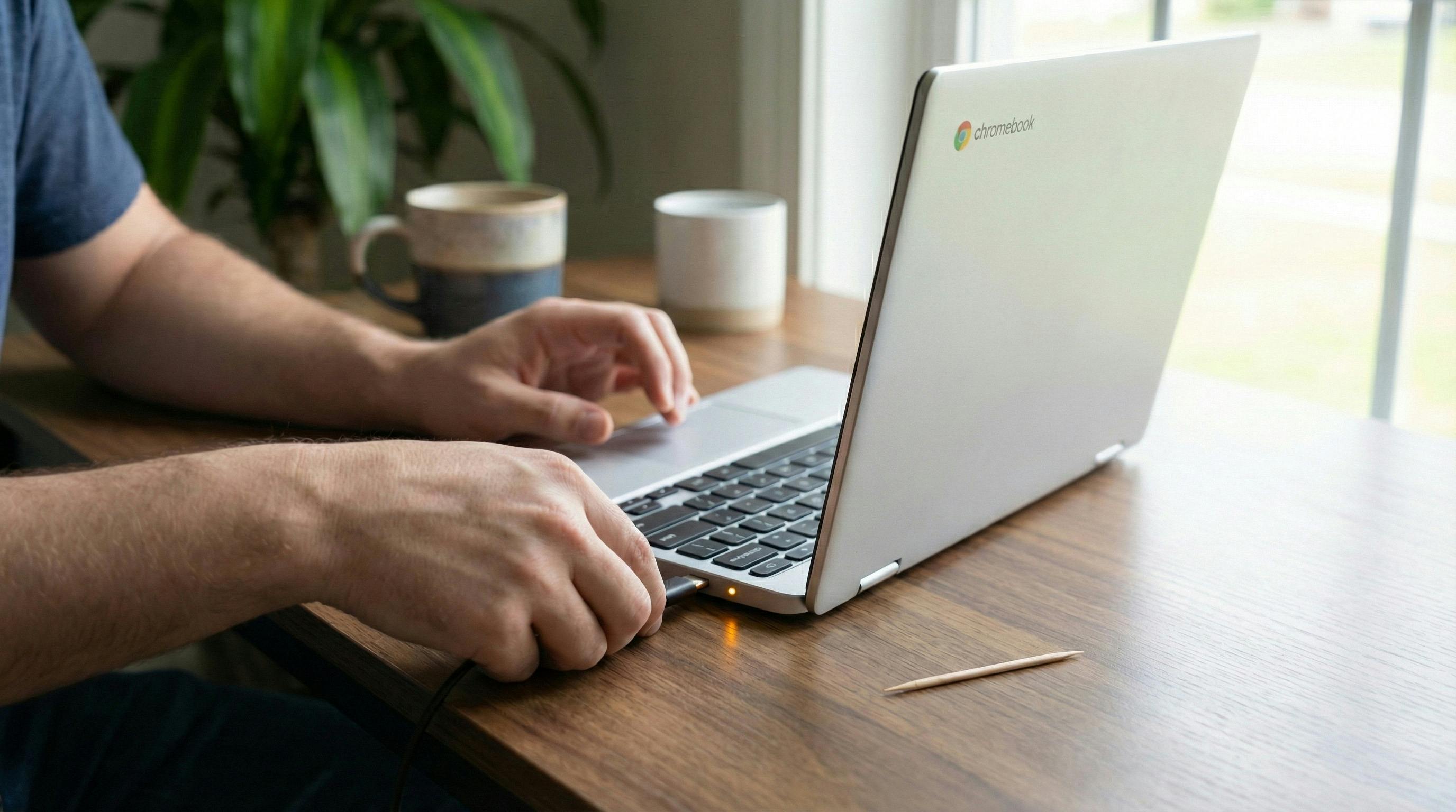 Hardware kan soms in de war raken door een aangesloten accessoire dat een storing of kortsluiting veroorzaakt. De eerste stap is daarom simpelweg het loshalen van alles dat aan je Chromebook hangt. Verwijder de oplader, maar haal ook eventuele usb-sticks, muizen, externe harde schijven en dongels eruit. Vergeet hierbij niet om ook eventuele geheugenkaartjes en je koptelefoon te verwijderen. Probeer de Chromebook nu opnieuw aan te zetten. Start hij op? Dan veroorzaakte een van je randapparaten waarschijnlijk het conflict. Sluit ze daarna één voor één weer aan om de boosdoener te vinden.