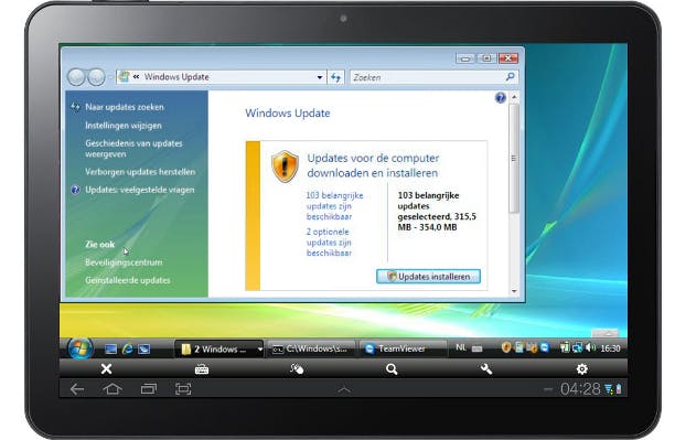 Zoals gezegd is TeamViewer voor allerlei platformen beschikbaar. U kunt deze versies door elkaar gebruiken en dus bijvoorbeeld met een Windows-computer het scherm overnemen van een Mac (of omgekeerd). Als u een partner-ID en wachtwoord hebt van de computer die u over wilt nemen, werkt het! Dit geldt ook voor mobiele apparatuur zoals een iPad, iPhone of Android-telefoon of -tablet. Hierbij kunt u vanaf het mobiele toestel de muisaanwijzer bedienen met uw vinger. Het is even wennen en het werkt minder goed dan met een echte muis, maar er valt goed mee te werken. Gebruikers van iOS (iPhone/iPad) vinden de gratis TeamViewer-app in Apples App Store (iPhone, iPad). Android-telefoon- en tablet-gebruikers kunnen de app ophalen via de Android Market.