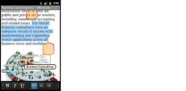 Ook als Android-telefoonbezitter kunt u ervoor kiezen extra apps te installeren, zodat u meer Word-bestanden kunt openen. Ook bij het Android-platform kunt u - net als iPhone-bezitters - terecht bij Quickoffice Pro. Met deze app kunt u ook Excel-bestanden openen. In Google Play - de app-markt van Android - betaalt u 11,57 euro voor de app, wat een behoorlijk fors bedrag is. Als u niet zeker weet of deze app wel uitkomst biedt, is er ook een gratis proefversie die zeven dagen lang volledige functionaliteit biedt. Andere apps die u op Android-toestellen kunt gebruiken zijn Kingsoft Office en OfficeSuite Pro 5. Ook handig is de officiële Google Docs-app. Omdat Google ook verantwoordelijk is voor het Android-besturingssysteem, kunt ervan uitgaan dat Android-telefoons perfect samenwerken met de Google-diensten. Met Google Docs voor Android kunt u Word-bestanden bekijken, bewerken en opslaan in de 'cloud'. De content blijft dan online staan. U kunt hem via de Google Docs-dienst eenvoudig delen met anderen.