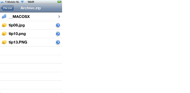 De iPhone biedt standaard geen Verkenner- of Finder-achtige manier om door mappen te bladeren. De locatie van de bestanden ziet u dus nooit, de opslag ervan gebeurt altijd achter de schermen. U hoeft daarom ook nooit een map te kiezen als u bijvoorbeeld een document in Pages opent. Als u toch graag wilt zien waar een map is opgeslagen, kunt u daar een oplossing voor zoeken in de de App Store, zoals File App (gratis) of GoodReader (4 euro). Ook is het handig om een app te downloaden die zip-bestanden kan uitpakken. Zonder zo'n applicatie kunt u onderweg nooit de inhoud van een gecomprimeerd zip-bestand bekijken of bewerken. Voor deze functie kunt u de gratis app Zip File Viewer gebruiken. Ook File App en Good Reader bieden deze functionaliteit, maar deze apps hebben de meerwaarde dat ze nog allerlei andere mogelijkheden bieden om met bestanden te werken. Zo kunt u er ook bestanden mee ordenen en ze overzetten vanaf uw computer.