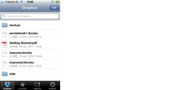 Een handige manier om het gebrek aan een Verkenner of Finder op te vangen, is door gebruik te maken van Dropbox. Met de gratis service kunt u 2 GB aan gegevens opslaan in de 'cloud'. Voor deze dienst zijn prima apps ontwikkeld voor Android-toestellen en voor de iPhone, iPad en BlackBerry. U kunt Dropbox gebruiken als mappensysteem. Zet een bestand dat u ontvangt even weg op Dropbox, zodat u het later weer kunt oppakken. Dropbox is ook in veel andere apps geïntegreerd, zodat u bijvoorbeeld bestanden kunt opslaan en laden vanuit een tekstverwerker. Houd u wel rekening met de bestandsgrootte en de snelheid van de verbinding. Word-bestanden verplaatsen over 3G werkt natuurlijk prima, maar voor videobestanden hebt u eigenlijk een wifi-verbinding nodig - niet alleen vanwege de snelheid, maar ook om te voorkomen dat u uw datalimiet al snel overschrijdt. Een soortgelijke dienst is SkyDrive, dat werkt met uw Hotmail- of Live Mail-gegevens.