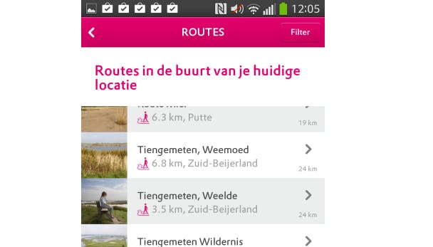 In de app van Natuurmonumenten kun je de beste wandellocaties van Nederland vinden. Je kunt daarbij routes zoeken op basis van de activiteit die je wilt ondernemen. Je geeft aan of je wilt wandelen, fietsen of kanoën en vult de plaats in waar je dat wilt doen. De app zoekt dan voor jou de dichtstbijzijnde locaties uit en geeft ook alternatieven op afstand. Je hoeft dus niet elke keer dezelfde route te lopen of fietsen.