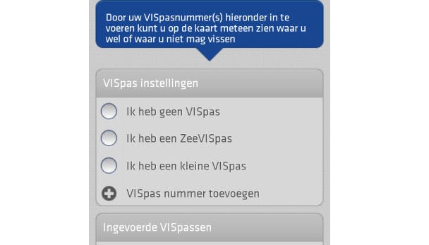 Je vult de postcode of plaatsnaam in waar je wilt vissen en de app geeft aan welke stekkies er in de buurt zijn. Vergeet niet dat je wel een visvergunning nodig hebt. Je vult bij de instellingen jouw type vispas in en op basis daarvan worden resultaten weergegeven. Je weet dan precies waar je mag vissen met jouw pas.