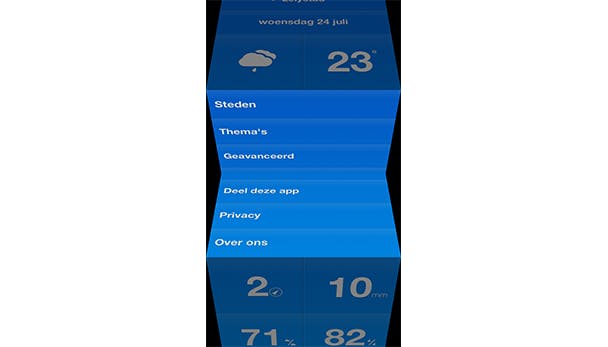 Even kort de basis: Weathercube is een kubus met allerlei informatie over het weer. Je kunt verschillende details bekijken door de kubus te draaien in iedere willekeurige richting. Maar je kunt de kubus ook openklappen door je vingers uit elkaar te bewegen, hetgeen ons doet denken aan een spelletje dat we vroeger met een origami-vouwsel speelden op het schoolplein. De app is nuttig, maar geloof ons dat je stiekem ook veel zult spelen met de interface, gewoon omdat het zo leuk is.