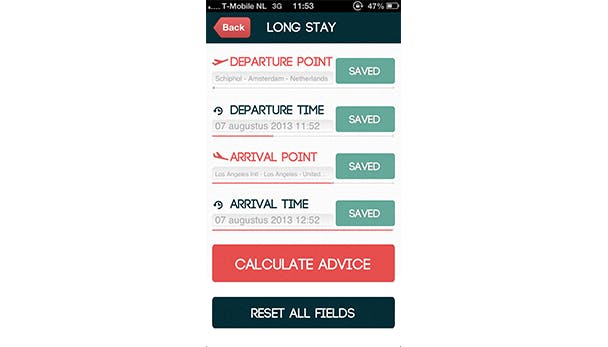 De app zelf is uiteraard ook interessant en biedt je nuttige tips die je kunt gebruiken om jetlag te voorkomen/verkorten tijdens een lange reis. Gelukkig zien de makers dat ook een hele eenvoudige app, ontzettend mooi mag zijn.