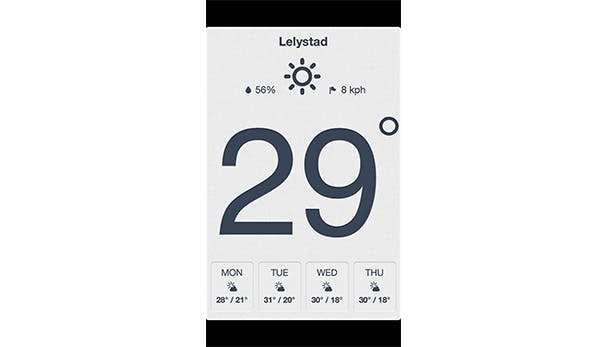 Het blijft lastig om je vinger erop te leggen waarom iets dat zo weinig beeld bevat, nu juist zo strak en prachtig ontworpen overkomt (ook dat heeft wellicht te maken met de filosofie van Ive: 'minimalisme is meer dan weglaten'). De app is niet heel uitgebreid: je selecteert een gebied en je ziet de temperatuur, dat is alles. De eenvoud van de pictogrammen en de mooie strakke rondingen van het gekozen lettertype maken het echter een genot om naar te kijken.