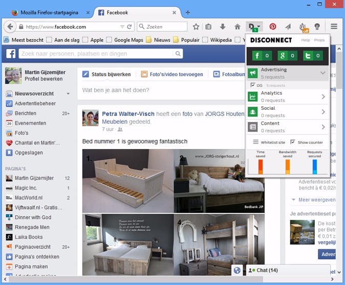 Met de verplichting om aan te geven dat een website cookies gebruikt, probeert de Europese Unie meer duidelijkheid te verschaffen in wat sites doen met je informatie. Veel handiger (en duidelijker) is echter het installeren van de extensie Disconnect. Deze extensie geeft je inzicht in welke sites je op wat voor manier volgen (en daar kon je best nog wel eens van schrikken) en geeft je de mogelijkheid om die connecties te verbreken. Dat surft toch met een veel veiliger gevoel.