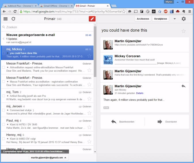 Tip 08 Offline gebruik maken van e-mail. Het kan met Gmail offline voor Chrome.