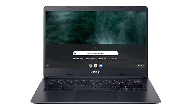 De houtskoolzwarte Acer Chromebook 314 C933 lijkt uiterlijk op een Windows-laptop, met een volwaardig toetsenbord (jammer genoeg niet verlicht), een grote touchpad en een helder full-hd-aanraakscherm van 14 inch. Dat dit geen Windows- maar een Chrome-laptop is, merk je al bij het opstarten: binnen enkele seconden is het apparaat gebruiksklaar. Ook de configuratie van het besturingssysteem werkt sneller dan bij Windows: in een vijftal minuten is alles ingesteld en ben je vertrokken.