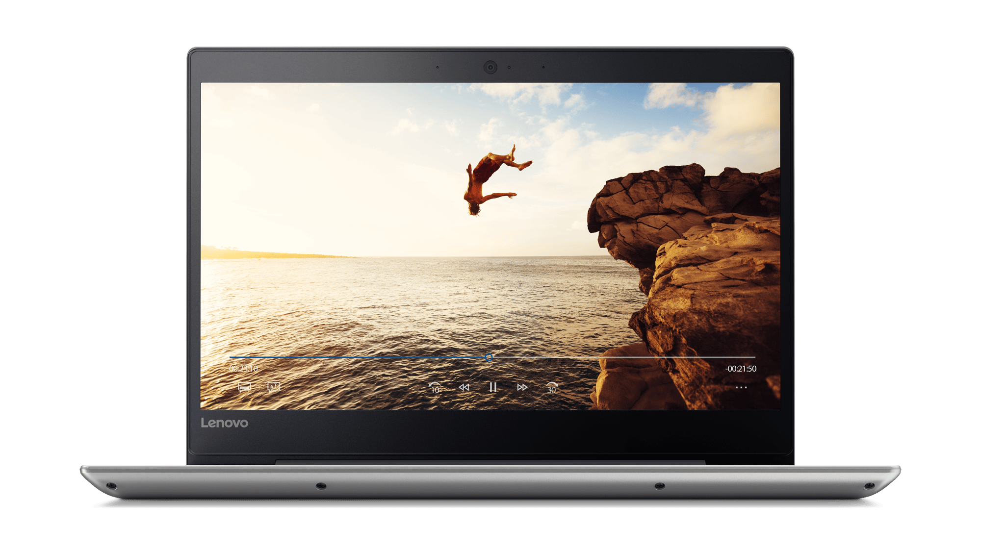 De stroomtoets bevindt zich net zoals bij de laptop van Acer aan het uiteinde van de bovenste rij met functietoetsen. Een ander voordeel is het relatief grote, ontspiegelde 14inch-full hd ips-scherm, dat niet aanraakgevoelig is, maar wel bijna tot tegen de rand van het schermdeksel loopt, zoals dit bij veel duurdere laptops al langer de gewoonte is. Mede door die dunne schermrand is de IdeaPad 320S iets kleiner en strakker dan een doorsnee 14inch-laptop. Het aluminium unibody-chassis is verkrijgbaar in verschillende schakeringen: zwart, wit, blauw en de door ons geteste zilveren variant.