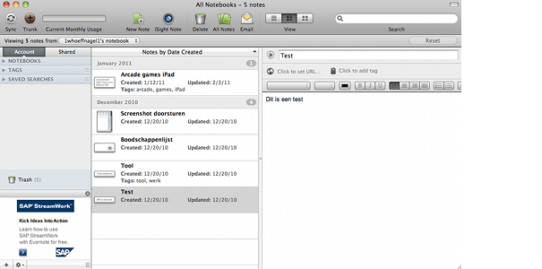 In Evernote kun je onder andere foto's, tekst en locaties opslaan als notitie