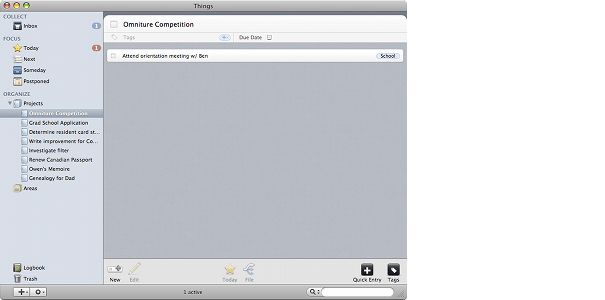 Taken bijhouden kan helpen bij het overzichtelijk maken van je leven. Things is een handige app die hierbij kan helpen. Hierin is de app uiteraard niet de enige, maar Things heeft een erg prettige interface. De app biedt je de mogelijkheid taken op te slaan en in te delen in allerlei categorieën. Je kunt vervolgens op categorie de taken bekijken, maar ook per dag. Daarnaast kun je projecten aanmaken, waarbij je per project taken kunt vastleggen. Things is helaas niet goedkoop en is voor 39,99 euro in de Mac App Store te downloaden.
