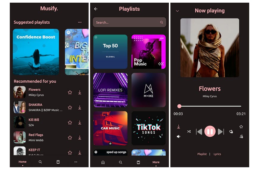 Musify is meer dan een download-app. Het is een muziek-app die je ook gebruikt voor het afspelen van muziek en het maken van playlists.