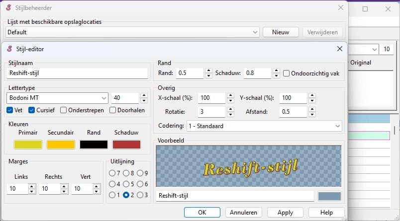 Bevestig met OK en met Sluiten. Selecteer nu de (gewenste) ondertitels en selecteer net onder de knoppenbalk de gewenste stijl (standaard Default). Bewaar je ondertiteling via Bestand / Ondertitels opslaan als en kies het .ass-formaat. Je zult zelf moeten ondervinden in hoeverre de opmaak door je mediaspeler(s) wordt ondersteund.