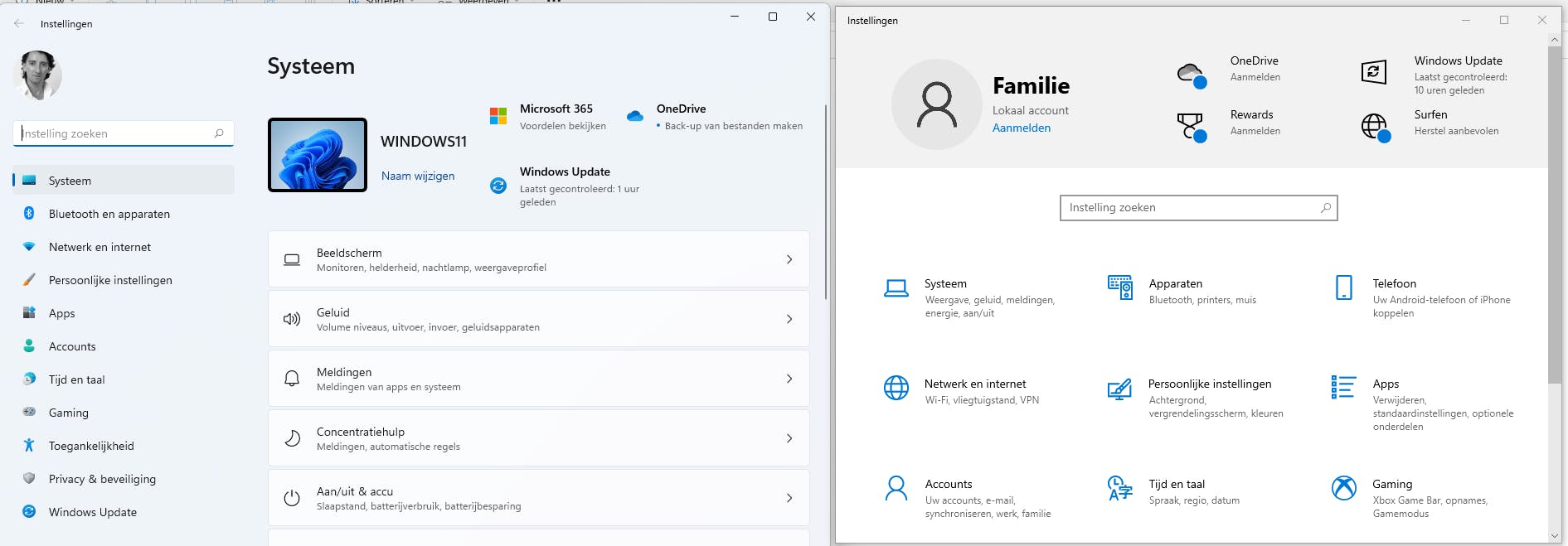 Naast de Verkenner zijn er nog meer onderdelen gewijzigd in Windows 11. Neem het instellingenvenster, dat je oproept via de toetscombinatie Windows-toets+I. In tegenstelling tot Windows 10 zie je alle categorieën aan de linkerkant van het instellingenvenster staan. Doordat het een lange rij met items is, zie je geen korte beschrijving meer over welke andere functies zich in die categorie bevinden. In Windows 10 zag je bijvoorbeeld bij Persoonlijke instellingen ook nog Achtergrond, vergrendelingsscherm, kleuren staan in een lichter lettertype, zodat je makkelijker kon zien welke categorie waarvoor bedoeld is. In Windows 11 moet je dus wat meer zoeken naar het onderdeel dat je nodig hebt, of je geheugen wat beter aanspreken, want de onderdelen zijn niet anders dan in Windows 10.