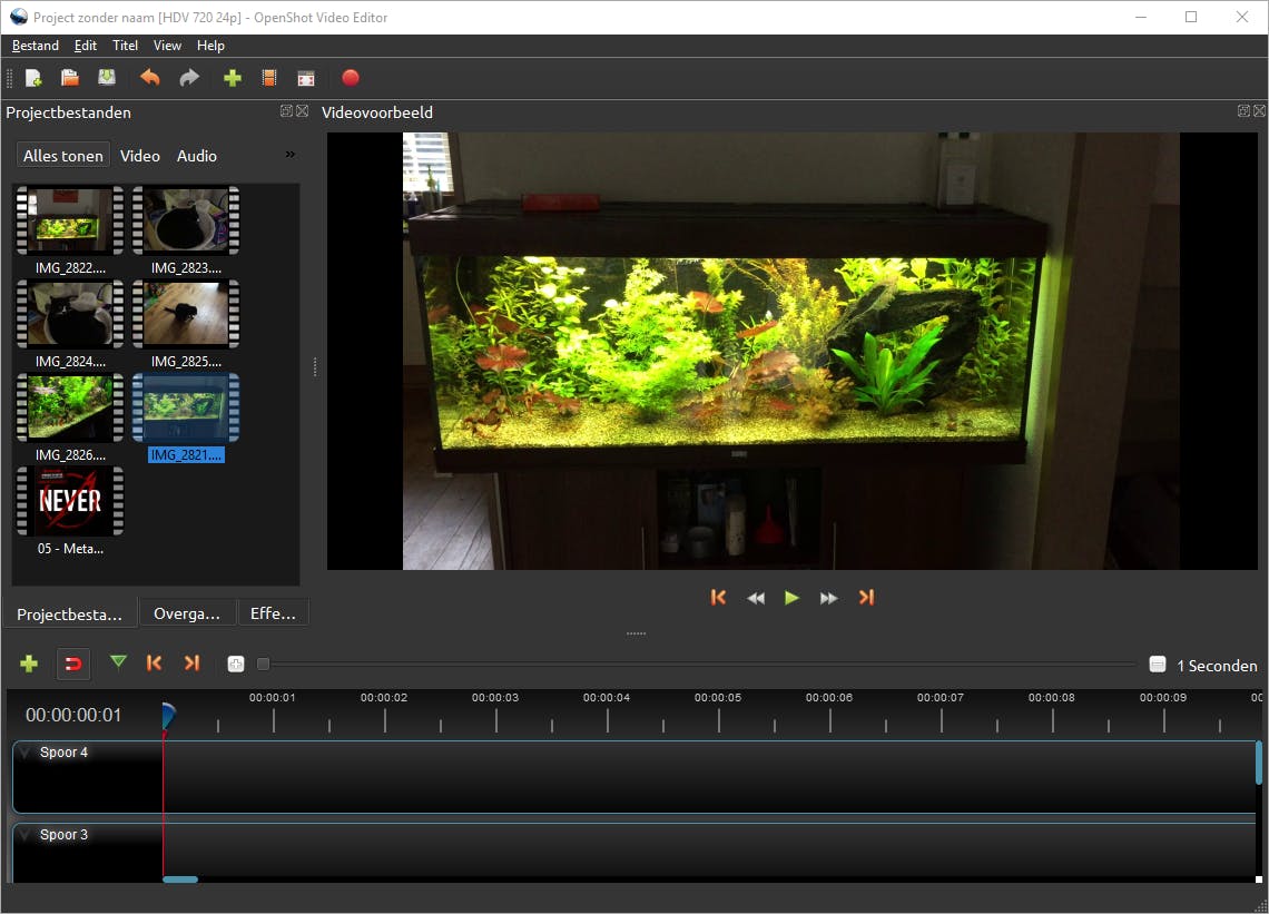 Net zoals je voorheen bij Windows Movie Maker gewend was, is het zaak om eerst de juiste videobestanden in OpenShot Video Editor te importeren. Je sluit zo nodig je smartphone, tablet, videocamera, sd-kaart, usb-stick of externe schijf met videobestanden op je computer aan. Klik in het menu op Bestand / Bestanden importeren. Je bladert in de verkenner vervolgens naar de juiste locatie om de videobestanden te tonen. Goed om te weten is dat OpenShot Video Editor ook netwerkmappen herkent, zodat je bijvoorbeeld video’s vanaf een nas rechtstreeks kunt importeren. Selecteer de gewenste video’s en bevestig met Openen. Het programma ondersteunt de meeste gangbare videoformaten, zoals mts, vob, mkv en mov. Houd er rekening mee dat het vaak niet lukt om rechtstreeks videobestanden van een iPhone of iPad te importeren. Sla de mediabestanden dan eerst lokaal op en voeg ze daarna alsnog toe. Naast videobestanden importeer je eventueel ook muziek en afbeeldingen.