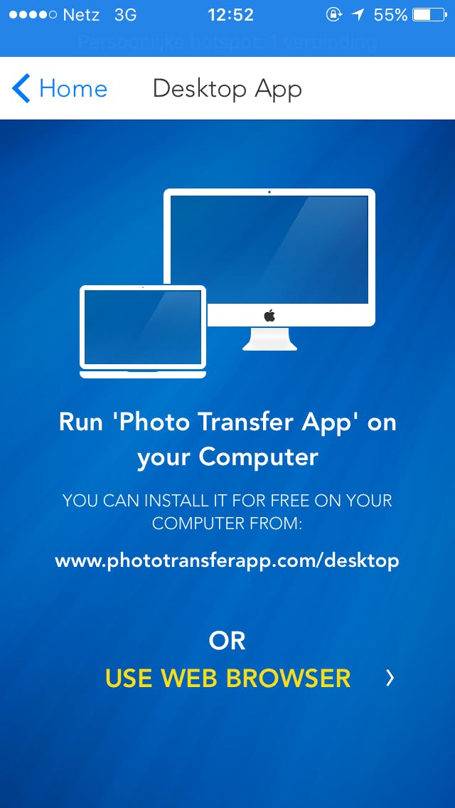 Ga naar de App Store en download de gratis Photo Transfer App voor je iPhone, iPad of Android-apparaat (in deze how to gebruiken we een iPhone en een Mac). Op je Mac ga je naar de App Store en download je het gelijknamige programma. Met de gratis versie kun je alleen foto´s in lagere kwaliteit verzenden. Wil je de foto's en video's in hoge resolutie verzenden, dan moet je in de app voor de betaalde upgrade van 6,99 euro kiezen.