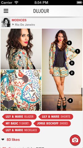 Doordat de app de mogelijkheid biedt om kledingstukken in foto’s te taggen is het redelijk eenvoudig om een specifiek kledingstuk bij een winkel terug te vinden. Helaas zijn niet alle gebruikers even consequent met het taggen van kledingstukken. Verder is Dujour een app die voornamelijk inspiratie biedt voor vrouwen. De modebewuste man zal zijn inspiratie nog even ergens anders vandaan moeten halen.